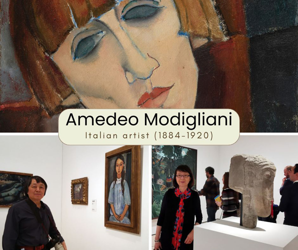 Artwork details and gallery views include the following paintings and sculptures by Amedeo Modigliani: