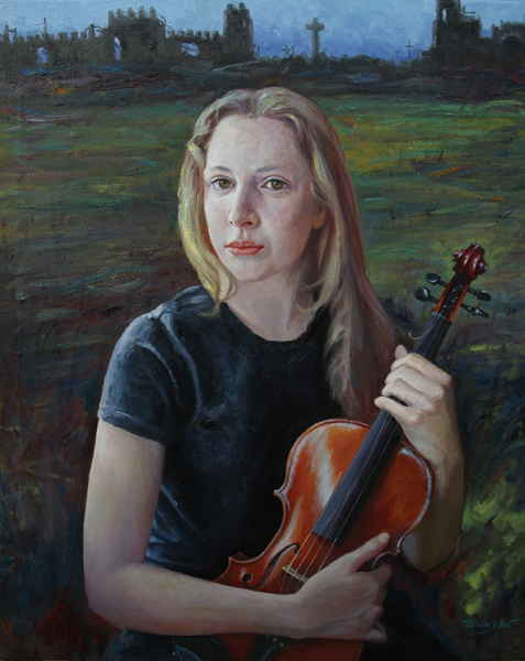 Oil paintings by Yan Sun with similar subject of girl and her violin: