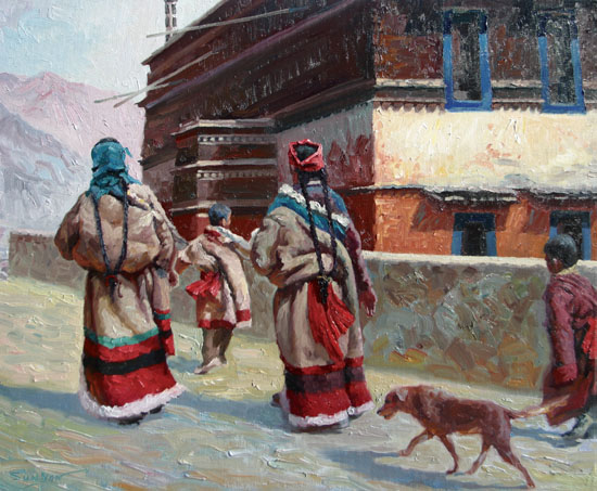 Oil painting also has Tibetan theme: A Day in Tibet by Yan Sun