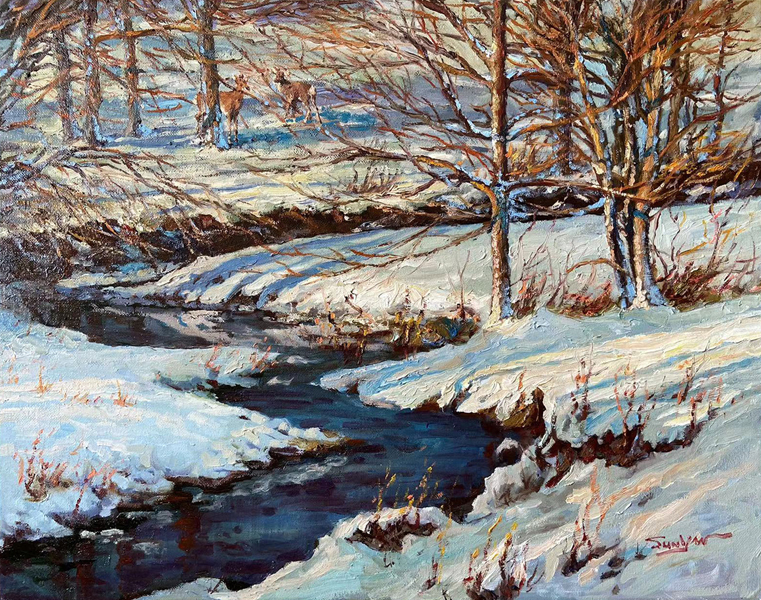 View oil painting of similar theme: Winter Creek by Yan Sun.